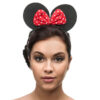 Opaska Myszka w kolorze czarnym z czerwoną kokardką w białe kropki.