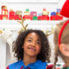 Metalowa opaska Renifer z materiałowymi rogami w kolorze złotym, wymiary ok. 34.5 x 22 cm.