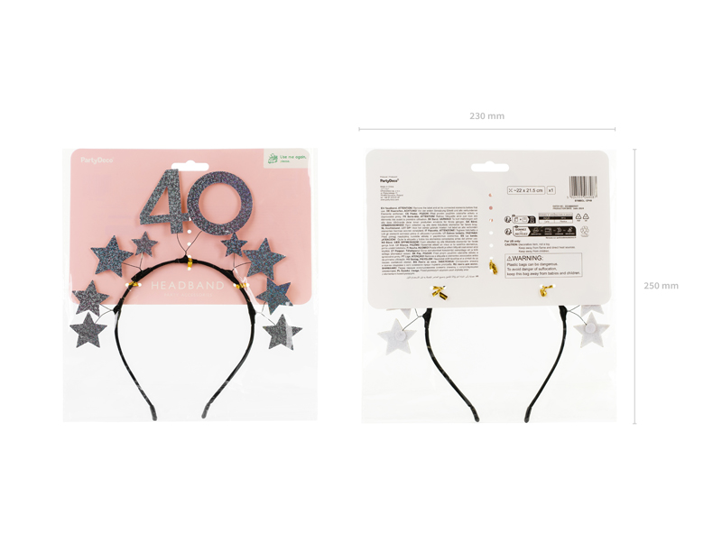 Opaska z gwiazdkami 40 w kolorze srebrnym, rozmiar ok. 22×21,5 cm.