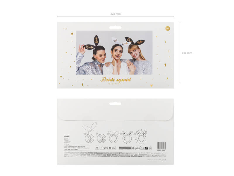 Bride Squad musi się wyróżniać! W wieczór panieński dziewczyny chcą się dobrze bawić, a akcesoria i dodatki bardzo im w tym pomogą. Zestaw opasek na głowę dla panny młodej i jej druhen to wspaniały sposób, żeby wyróżnić się z tłumu i dodać charakteru wieczorom panieńskim. Zestaw zawiera 6 opasek z uszkami Bride Squad, 5 opasek w kolorze czarnym i 1 w kolorze białym. Wymiary ok. 15 x 29 cm. (1 op. / 6 szt.)