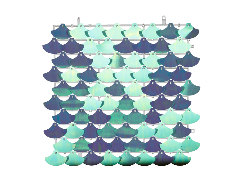 Panel cekinowy, cekiny w kształcie łuski, w kolorze jasnoliliowym, wymiar ok. 30×30 cm. Panele cekinowe posiadają zatrzaski na bokach, które umożliwiają łączenie paneli w spójną całość. Połączone panele idealnie pasują na stojak SNT5-150-019, które można zamontować używając żyłki. Panele tworzą niesamowity efekt dzięki blaszkom, które ruszają się wskutek ruchu powietrza.