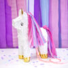 Piniata w kształcie jednorożca do wypełnienia upominkami, mix kolorów, wymiary ok. 24,5 x 34 x 9 cm.