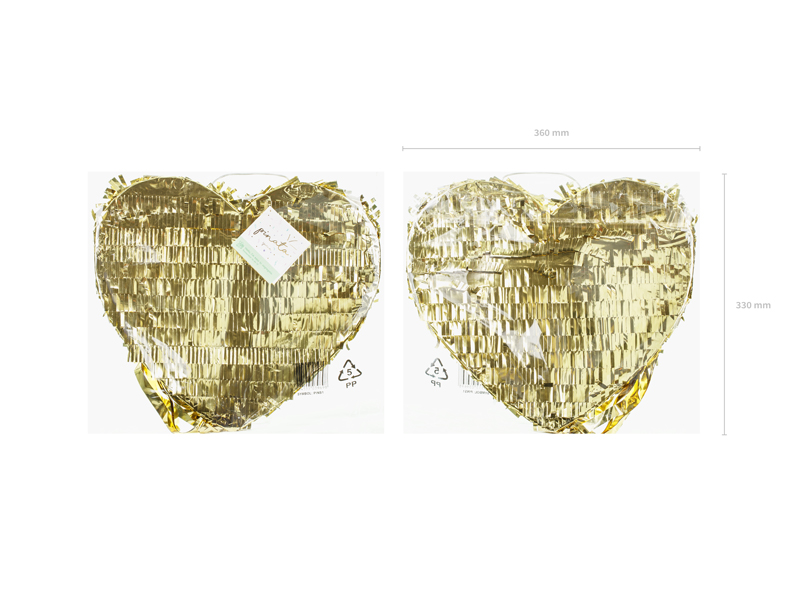 Piniata składana Serce Love – potrzebna tam, gdzie serce mocniej bije. Wspaniały pomysł na zabawę dla gości weselnych, ale także na wieczory panieńskie, walentynkowe imprezy czy tematyczne przyjęcia. Piniata w kształcie serca, do wypełnienia upominkami, słodyczami lub płatkami kwiatów. Wymiary ok. 36 x 32 x 10 cm.