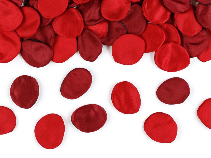 Płatki róż w kolorze czerwono-bordowym, 100 sztuk. (1 op. / 100 szt.)