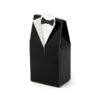 Pudełeczka Pan Młody wykonane z papieru w kolorze czarno-białym, idealne na prezenciki dla gości, wymiary po złożeniu 5x3x9,5 centymetrów. (1 op. / 10 szt.)