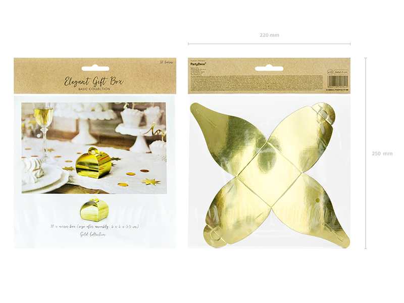 Pudełeczka wykonane ze złotego lustrzanego papieru, wymiary ok. 6 x 6 x 5,5 cm. (1 op. / 10 szt.)