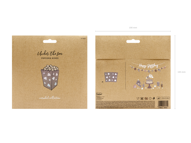 Pudełka na popcorn Narwal, mix, 7x7x12,5cm (1 op. / 6 szt.)
