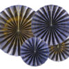 Rozety dekoracyjne, w kolorze granatowym ze złotymi wzorami, średnice po złożeniu ok. 23 cm (2 szt.), 32 cm (1 szt.) i 40 cm (1 szt.). (1 op. / 4 szt.)