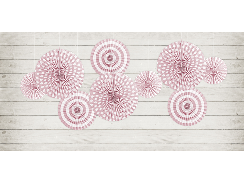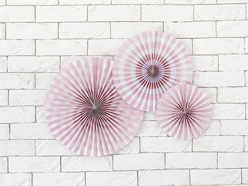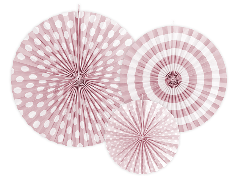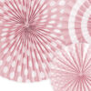 Rozety dekoracyjne Pastelove, w kolorze jasnoróżowym, z nadrukiem, średnice ok.: 40 cm, 32 cm i 23 cm. (1 op. / 3 szt.)