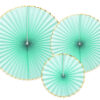 Rozety dekoracyjne Yummy w kolorze miętowym ze złotymi brzegami, średnice ok.: 40 cm, 32 cm i 23 cm. (1 op. / 3 szt.)