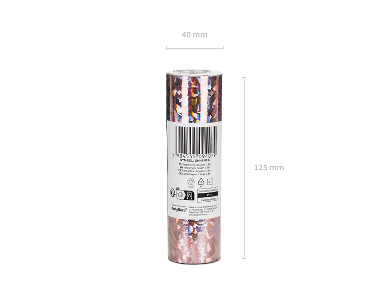 Serpentyny holograficzne, jasny różowy, 3,8 m (1 op. / 18 szt.)