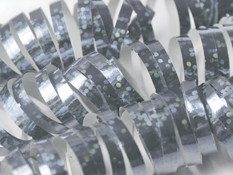 Serpentyny holograficzne w kolorze srebrnym o długości 3,8 metra. (1 op. / 18 szt.)