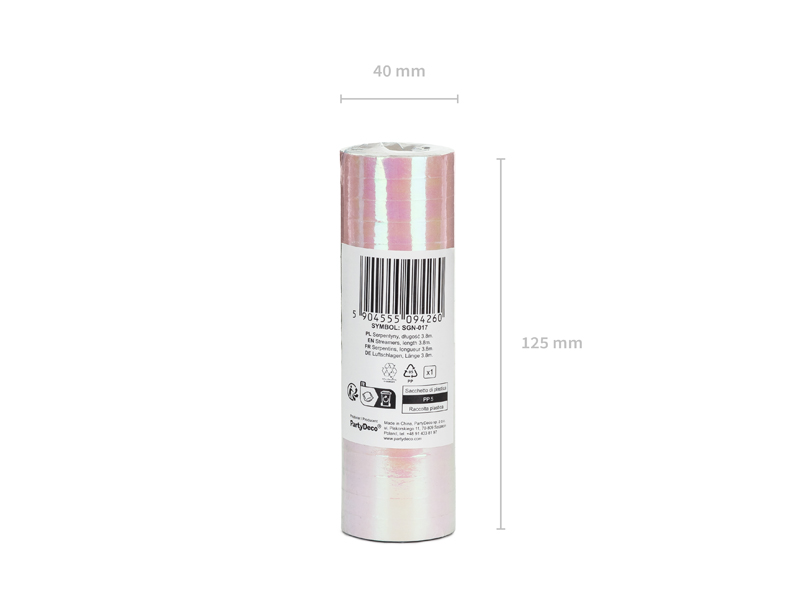 Serpentyny opalizujące w kolorze opalizującym, długość ok. 3,8 m. (1 op. / 18 szt.)