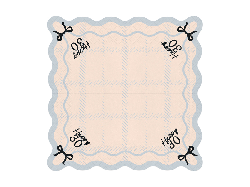 Serwetki papierowe „Happy 30” mix kolorów, wymiary po rozłożeniu ok. 33 x 33 cm, wymiary po złożeniu ok. 16,5 x 16,5 cm. (1 op. / 12 szt.)