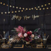 Serwetki papierowe w kolorze czarnym ze złotym metalizowanym nadrukiem i napisem Happy New Year, wymiary po rozłożeniu ok. 33 x 33 cm, wymiary po złożeniu ok. 16,5 x 16,5 cm. (1 op. / 20 szt.)
