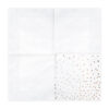 Serwetki papierowe w kolorze białym z wzorem w kropki w kolorze różowego złota, wymiary po rozłożeniu ok. 33 x 33 cm, wymiary po złożeniu ok. 16.5 x 16.5 cm. (1 op. / 20 szt.)