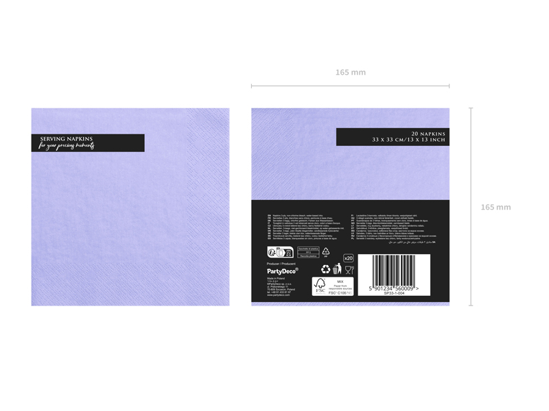 Serwetki trójwarstwowe w kolorze liliowym, wymiary ok. 33 x 33 cm. (1 op. / 20 szt.)
