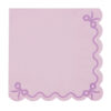 Serwetki papierowe w kolorze fioletowym zakończone falbanką. Na serwetkach nadruk wstążki z kokardką. Wymiary po rozłożeniu ok. 33 x 33 cm, wymiary po złożeniu ok. 16,5 x 16,5 cm. (1 op. / 12 szt.)