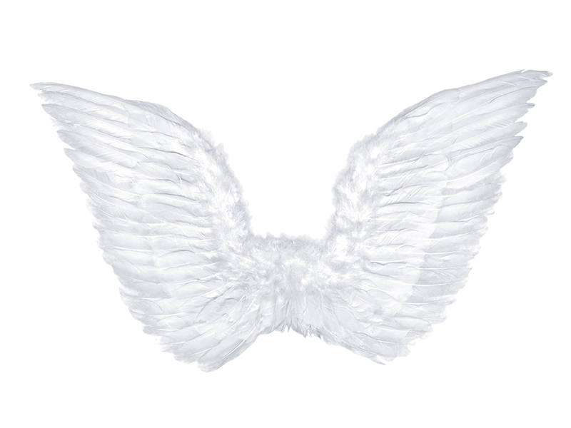 Skrzydła anioła w kolorze białym, wymiary 75×45 centymetrów.