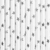 Słomki papierowe w kolorze białym, ze srebrnymi metalizowanymi gwiazdkami, długość ok. 19.5 cm. Towar nie może być sprzedawany na terytorium RFN i Szwajcarii, w związku z wewnętrznymi regulacjami prawnymi Niemiec i Szwajcarii. Towar zgodny z przepisami Unii Europejskiej. (1 op. / 10 szt.)