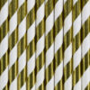 Słomki papierowe w kolorze złotym, metalizowanym z białymi ukośnymi paskami, długość ok. 19.5 cm. Towar nie może być sprzedawany na terytorium RFN i Szwajcarii, w związku z wewnętrznymi regulacjami prawnymi Niemiec i Szwajcarii. Towar zgodny z przepisami Unii Europejskiej. (1 op. / 10 szt.)