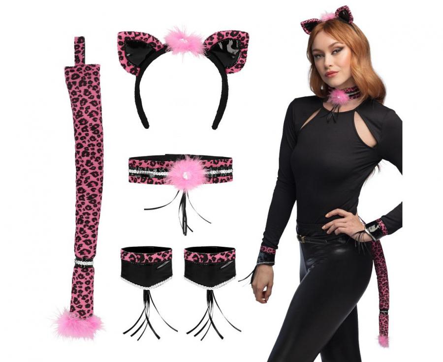 #STAI Zestaw Różowy Gepard (opaska, choker, 2 bransoletki, ogon)