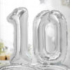Metalizowany stojący balon foliowy Cyfra ”0” w kolorze srebrnym, rozmiar przed napompowaniem ok. 90 cm (35”), rozmiar po napompowaniu ok. 70 cm (27.5”). Do napompowania powietrzem.