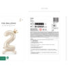 Stojący balon foliowy cyfra ”2” w kolorze jasnokremowym z satynowym wykończeniem i koroną w kolorze złotym, rozmiar przed napompowaniem 103 cm (40.5”), rozmiar po napompowaniu 84 cm (33”). Do napompowania powietrzem. W zestawie dołączona jest słomka