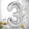 Stojący balon foliowy Cyfra ”3”, 70cm, srebrny