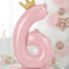 Stojący balon foliowy cyfra ”6”, 84 cm, jasny różowy