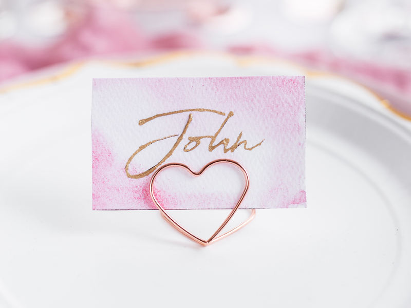 Stojaki na winietki Serca w kolorze różowego złota, wysokość ok. 2,5 cm. (1 op. / 10 szt.)