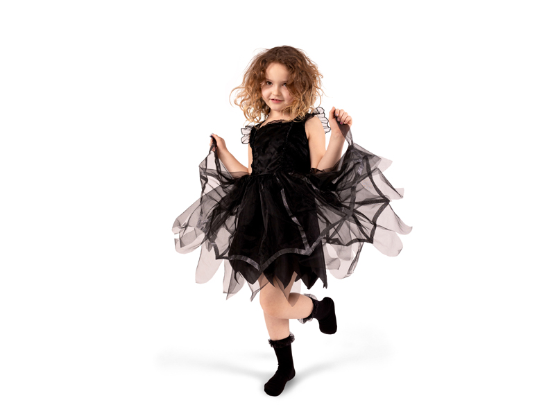 Strój dziecięcy Wiedźma w kolorze czarnym, rozmiar 116-128. Skład: poliester – 100%. Sposób konserwacji: prać ręcznie.