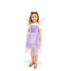 Strój Wróżka ze skrzydłami, rozmiar 116-128 cm (5-8 lat). Zestaw zawiera sukienkę w kolorze fioletowym z niebieskimi tiulowymi wstawkami oraz skrzydła z siateczki mocowane na rzep do pleców sukienki. Skład 100% poliester. Wymiary produktu: sukienka: długość 88 cm, obwód w pasie 60 cm, skrzydła 41×45,5 cm