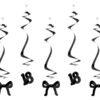 Czarne świderki urodzinowe. Zestaw zawiera 5 sztuk (2 x liczba 18, 3 x kokardka). Długość po rozwieszeniu około 50 cm. Świderki zakończone bezbarwnym haczykiem ułatwiającym mocowanie. (1 op. / 5 szt.)