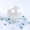 Świeca metalizowana Kula w kolorze perłowym, średnica 8 centymetrów. Czas palenia 1 sztuki około 20 godzin. (1 op. / 6 szt.)
