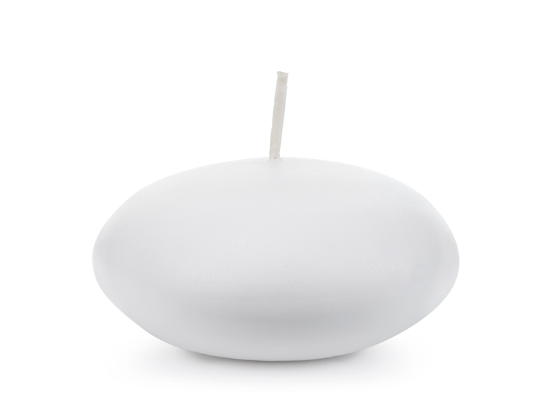 Świeca pływająca, matowa, w kolorze białym. Średnica ok. 8 cm. Zestaw zawiera 4 świece. Czas palenia: 10 godzin. (1 op. / 4 szt.)