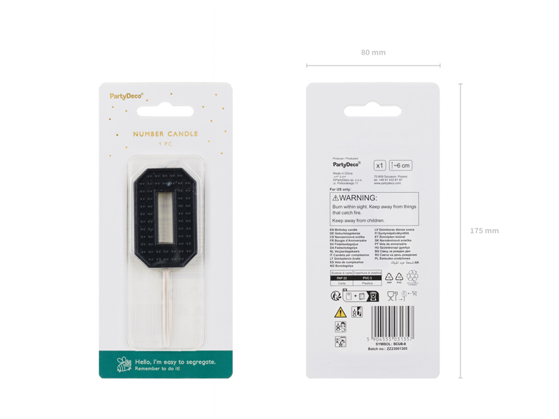 Świeczka urodzinowa Cyferka 0, 6 cm, czarny