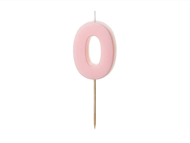 Świeczka urodzinowa Cyferka 0, w kolorze jasnoróżowym, rozmiar ok. 5.5 cm.