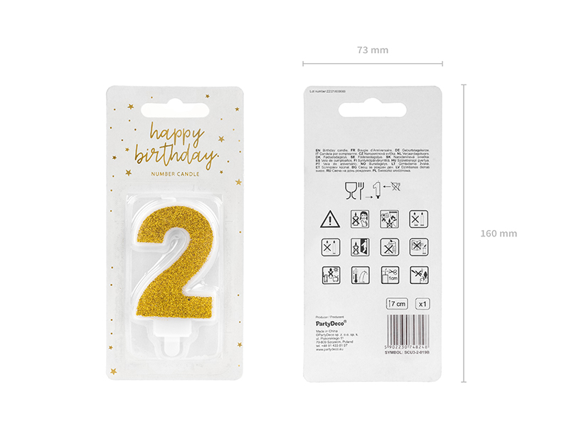Świeczka urodzinowa Cyferka 2, złoty, 7cm
