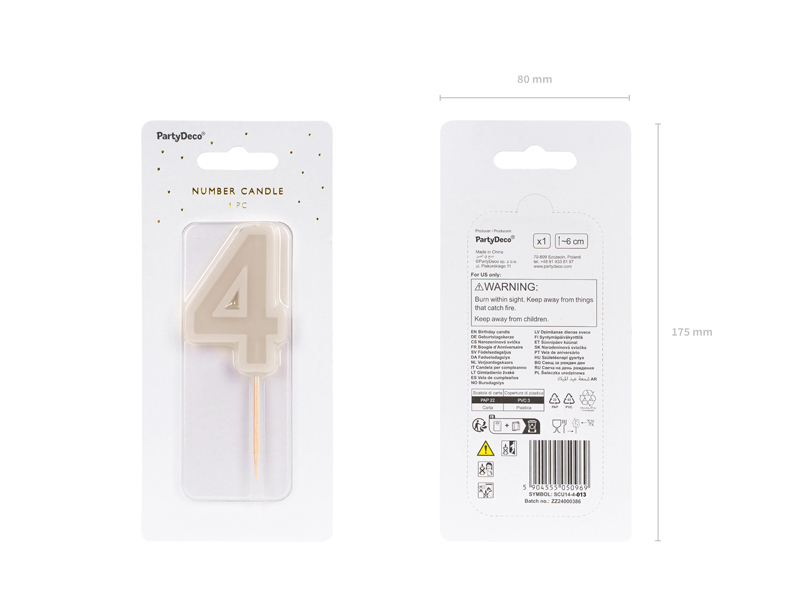 Świeczka urodzinowa Cyferka 4, beż, 6 cm
