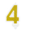 Świeczka urodzinowa Cyferka 4 w kolorze złotym brokatowym, rozmiar ok. 7 cm.