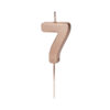 Świeczka urodzinowa Cyferka 7 w kolorze różowego złota na drewnianym patyczku, wysokość cyfry ok. 4.5 cm, wysokość całkowita ok. 9 cm.