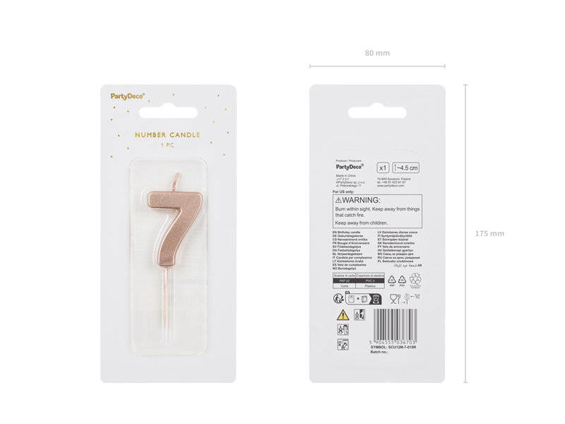 Świeczka urodzinowa Cyferka 7, różowe złoto, 4.5cm