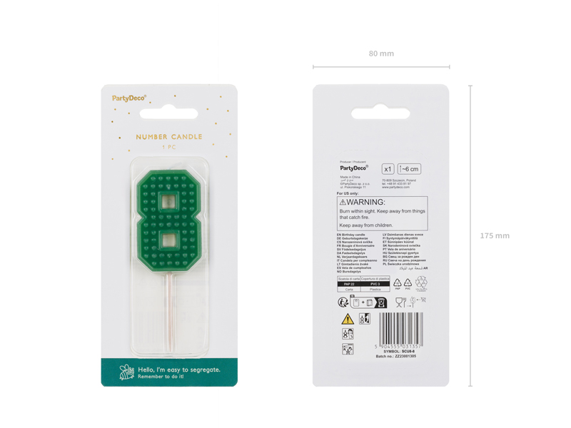 Świeczka urodzinowa Cyferka 8, 6 cm, zielony