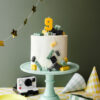 Świeczka urodzinowa Cyferka 9 we wzór klocka w kolorze żółtym, rozmiar ok. 6 cm.
