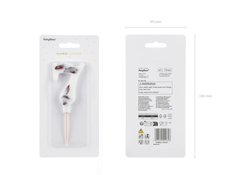 Świeczka urodzinowa Cyfra ”7”, biała z płatkami kwiatów, 8 cm