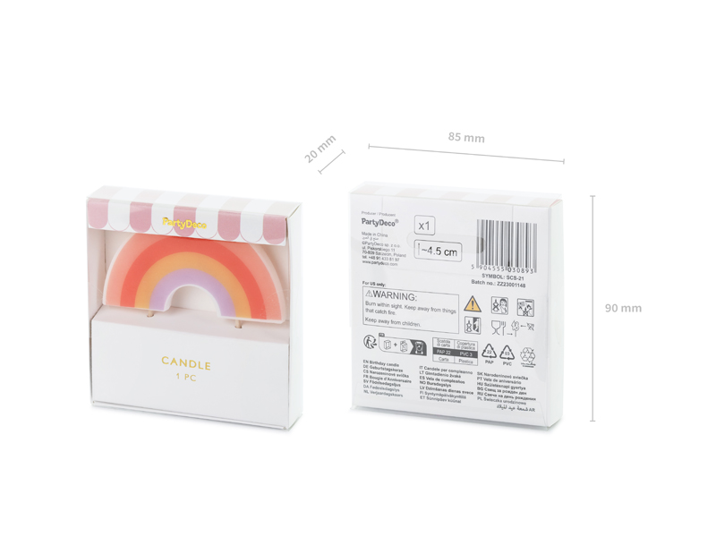 Świeczka urodzinowa Tęcza, 4.5 cm, mix