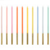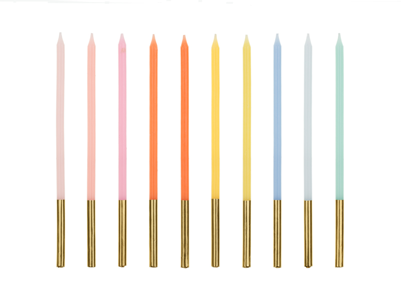 Świeczki urodzinowe gładkie, mix kolorów ze metalizowaną złotą końcówką, wysokość ok. 14 cm. (1 op. / 10 szt.)