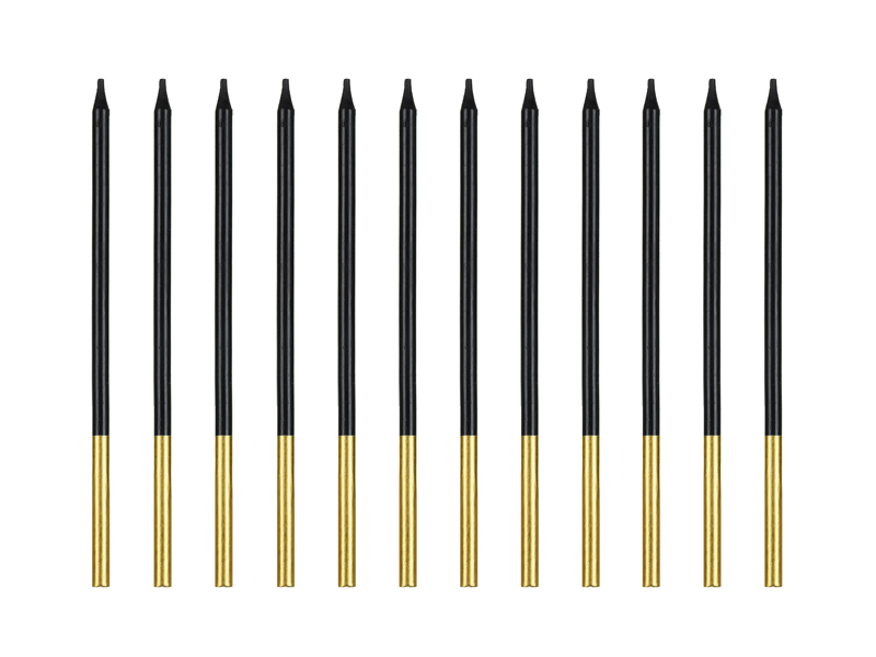 Świeczki urodzinowe gładkie w kolorze czarnym, wysokość ok. 14 cm. Zestaw zawiera 12 świeczek. (1 op. / 12 szt.)