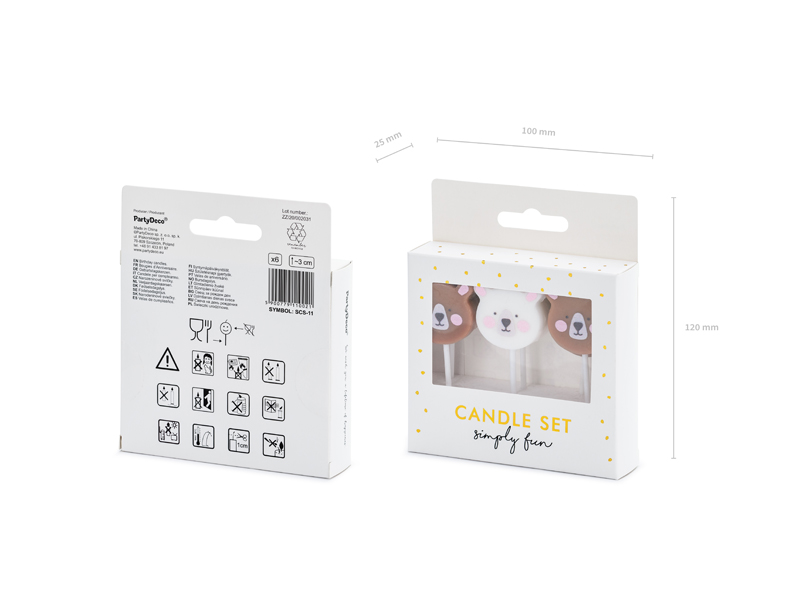 Świeczki urodzinowe Miś, mix, 3cm (1 op. / 6 szt.)